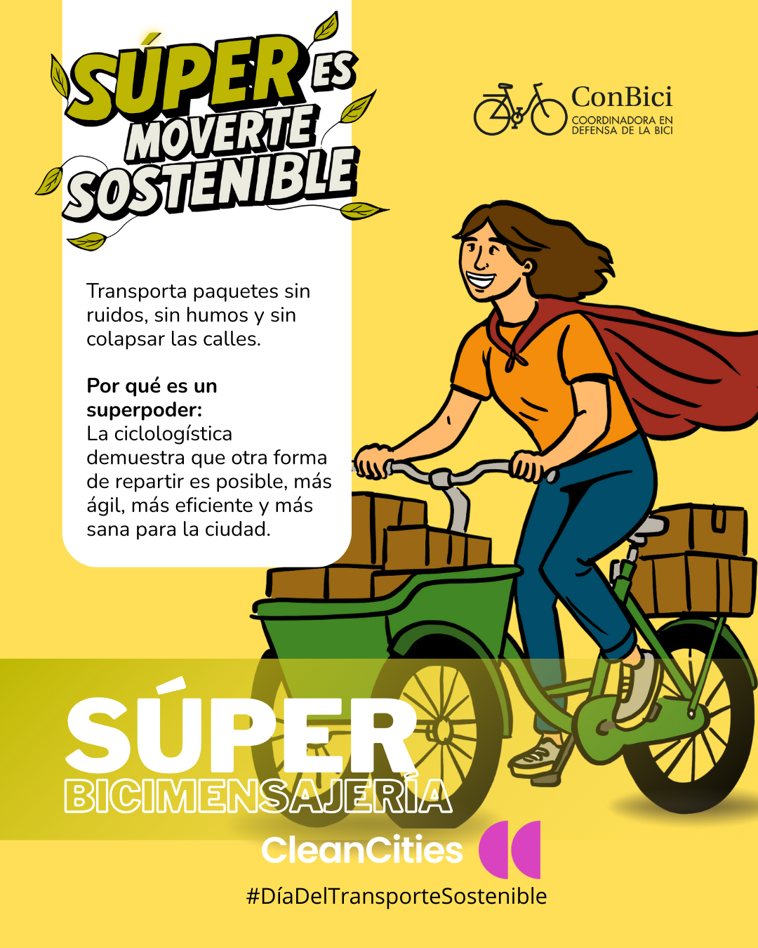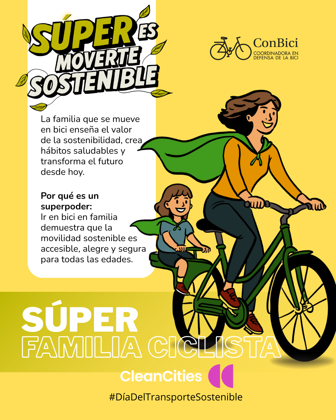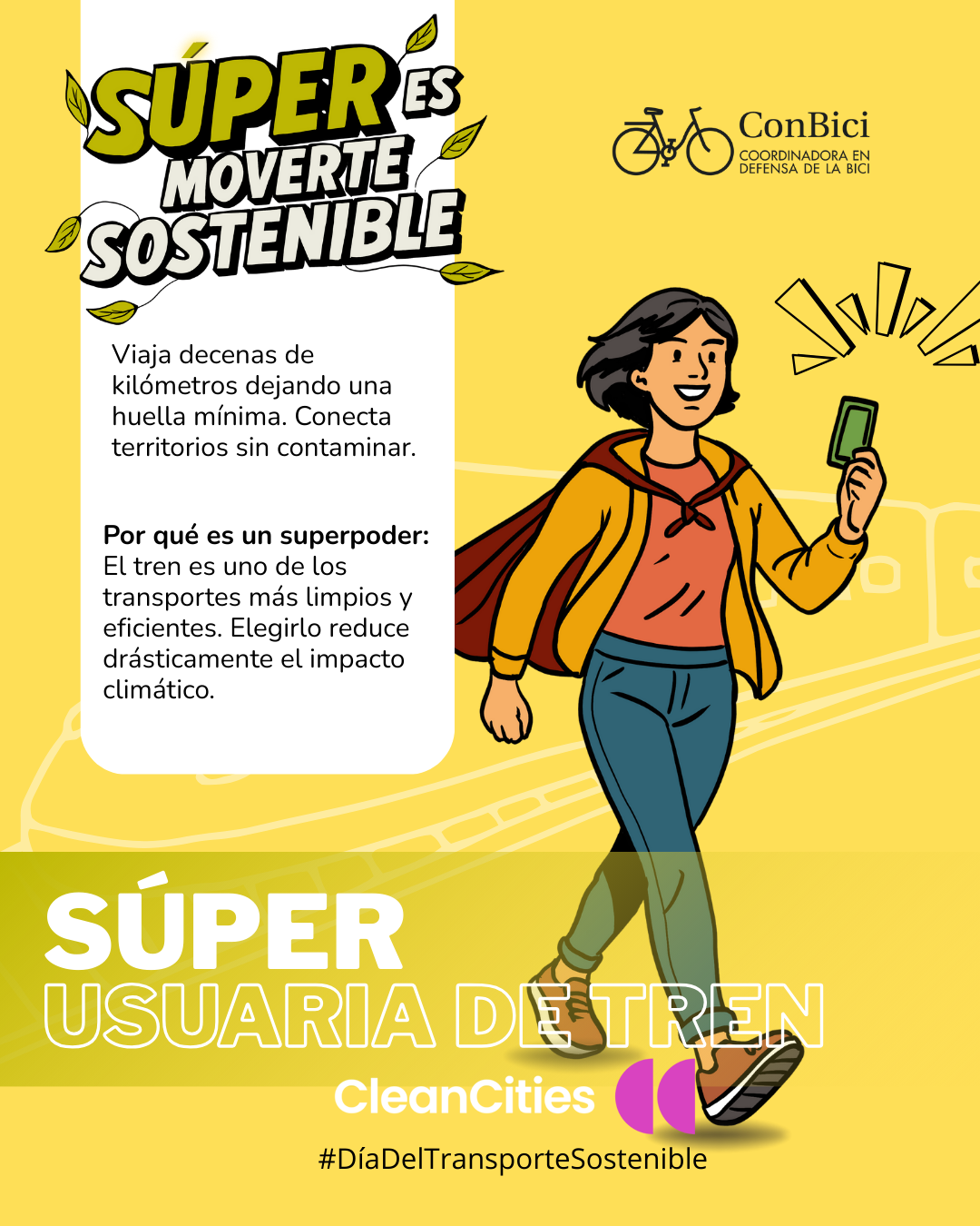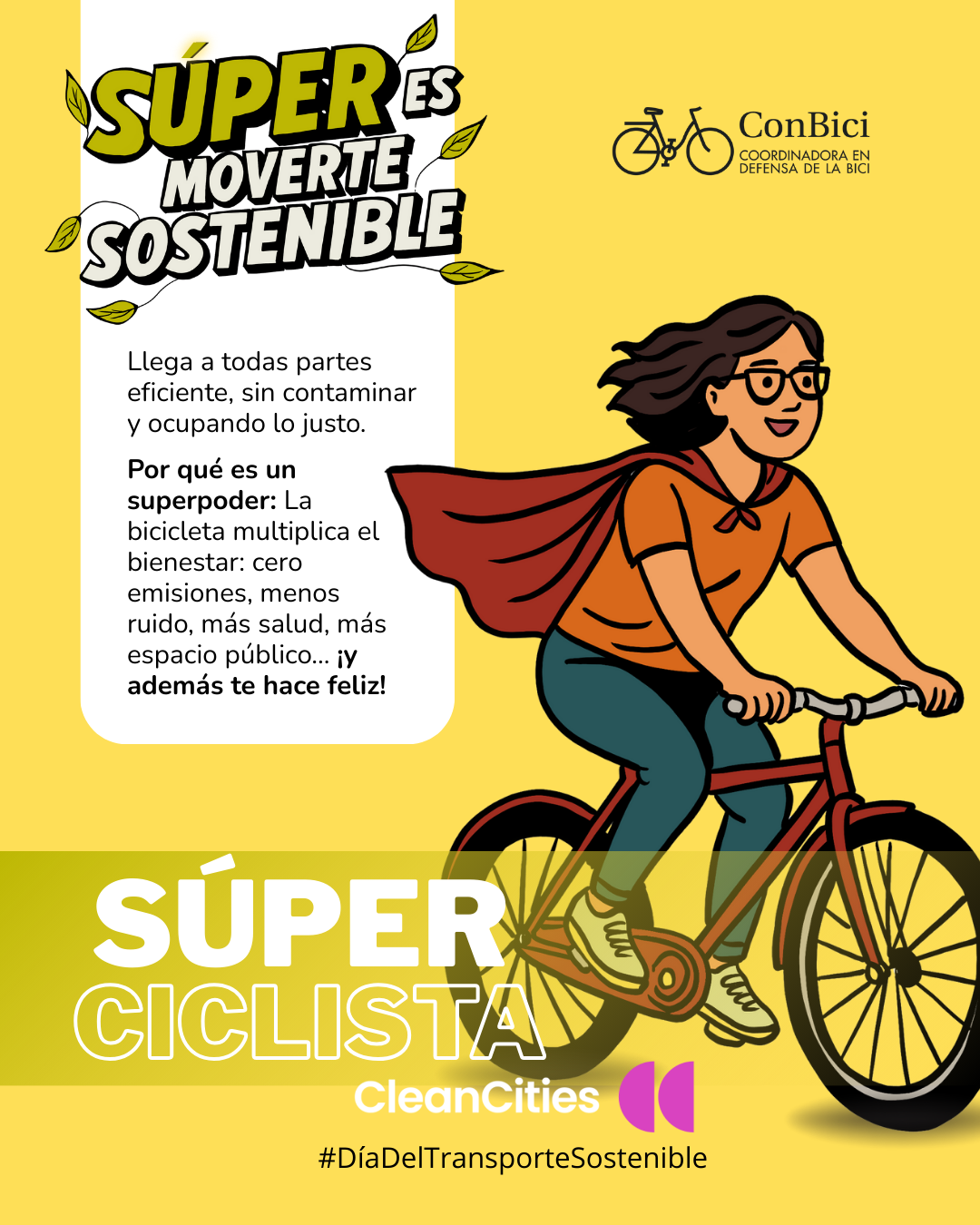 El pasado 26 de noviembre, se celebró el Día Mundial del Transporte Sostenible, una fecha proclamada por Naciones Unidas para reforzar la importancia de impulsar sistemas de movilidad seguros, accesibles, eficientes y con bajas emisiones. En el marco de esta jornada, ConBici, organización miembro de la Red Clean Cities Europa, presentó la campaña SÚPER es moverte sostenible, un homenaje a todas las personas que cada día caminan, pedalean o utilizan el transporte público, contribuyendo de manera directa a reducir emisiones y mejorar la salud urbana.